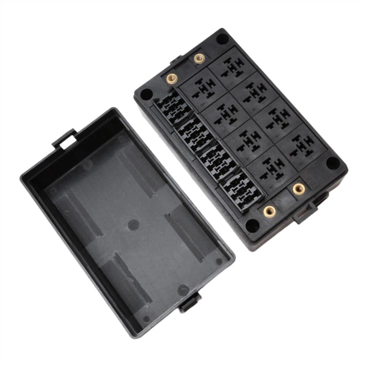 Скрынка для рэле з засцерагальнікамі з 12 слотамі ATC ATO засцерагальнік і 8 слотаў -рэле для рэле для 4 ці 5 -кантактных рэле - гэта прылада, прызначанае для кіравання электрычным харчаваннем транспартнага сродку ..